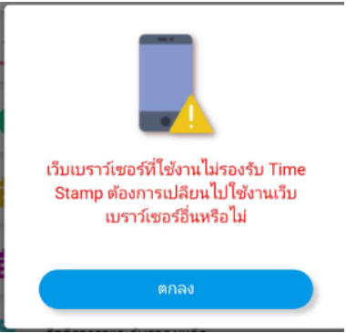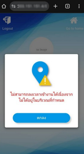เมื่อทำการลงเวลาผ่าน Mobile ไม่สำเร็จ ระบบจะมีการแจ้งเตือนต่าง ๆ ที่เกิดจากการกำหนดค่า Mobile เปิดการใช้งานของ Location บนมือถือ โดยจะสามารถพบ การแจ้งเตือนต่าง ๆ ได้ดังนี้