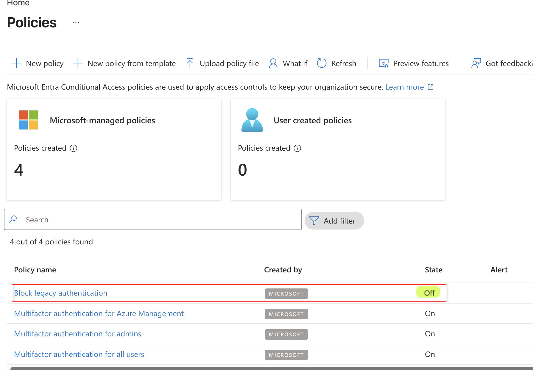ตั้งค่า Block Legacy authentication ให้เป็น Off