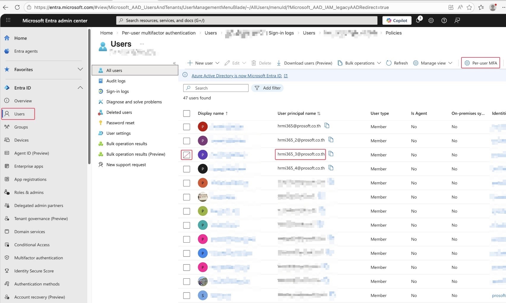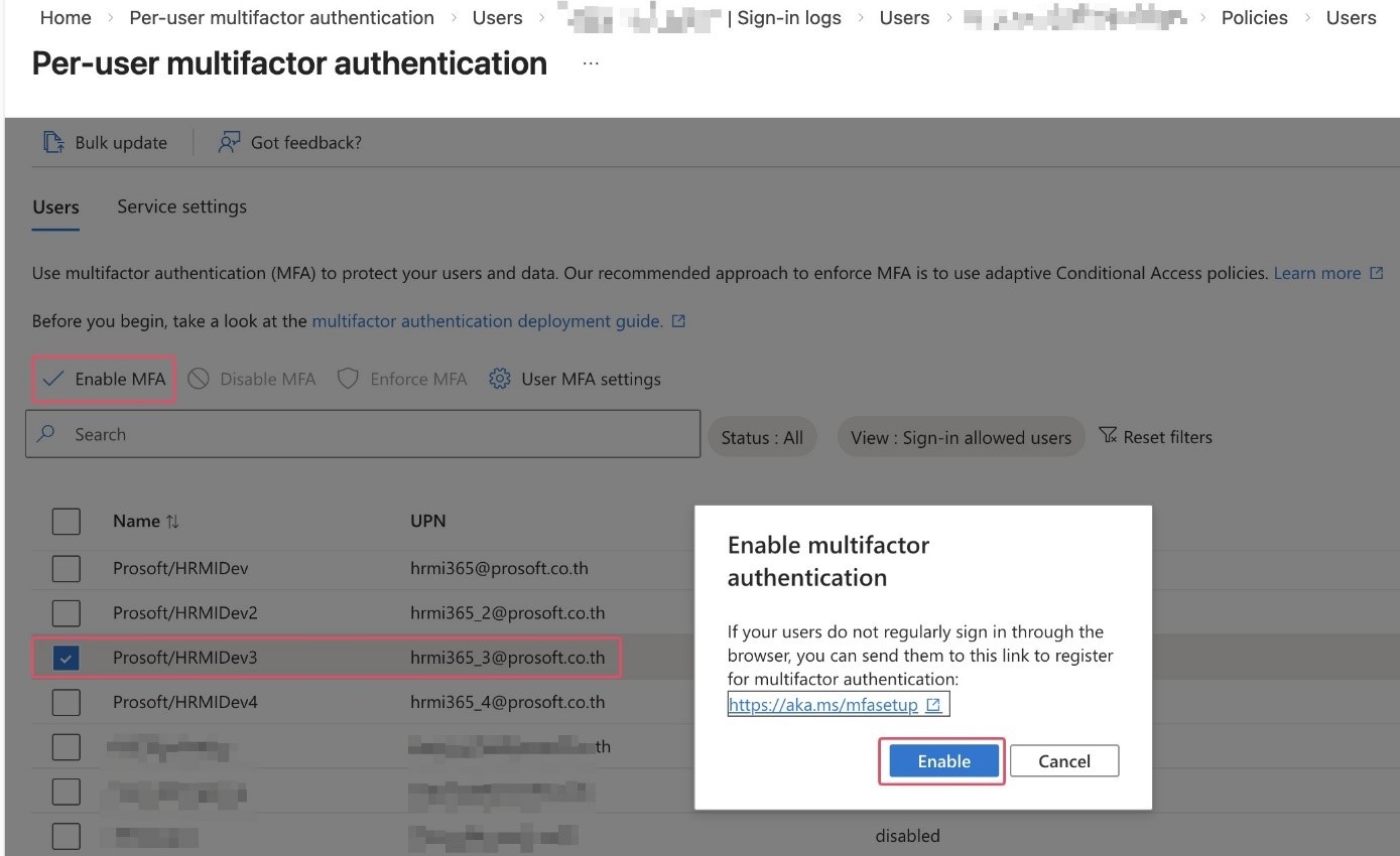 Home > Per-user multifactor authentication > Users > All users > Per-user MFA